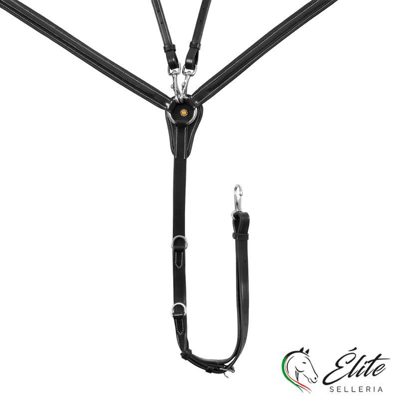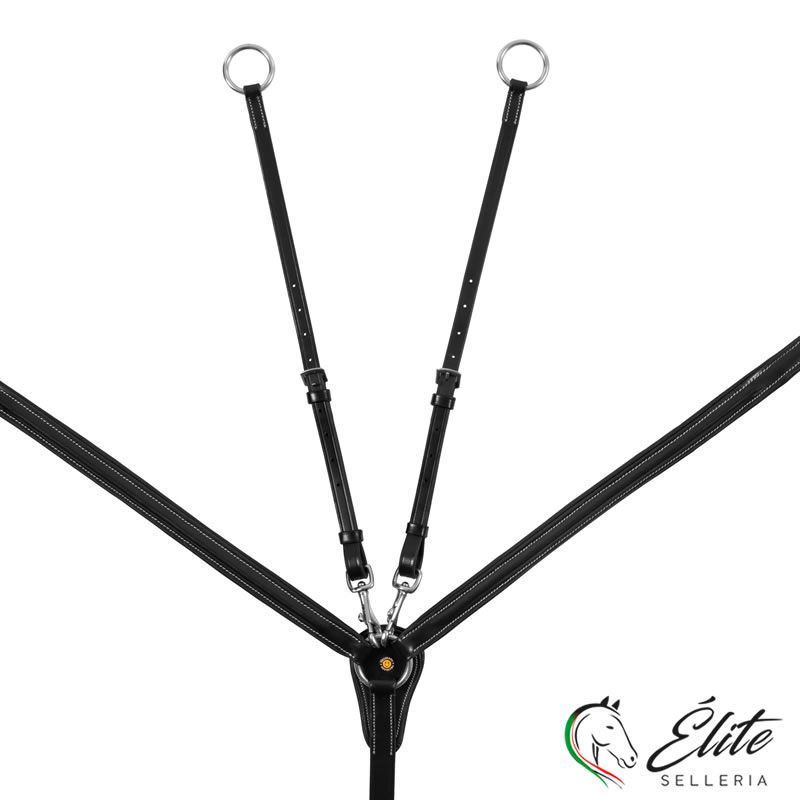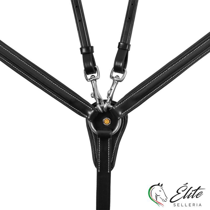 Pettorale con martingala amovibile in cuoio conciato per limitare i movimenti verso l'alto della testa del cavallo e quelli della sella.
