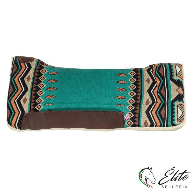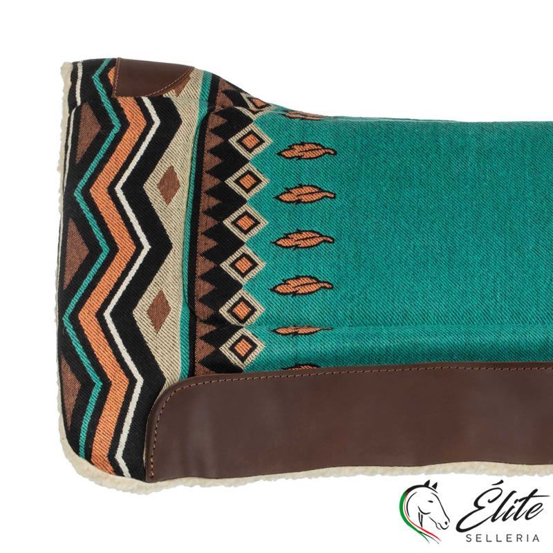 SOTTOSELLA WESTERN CON INSERTI IN PELLE E IMBOTTITURA IN LANA SINTETICA 85 X 87 TURCHESE/ARANCIONE