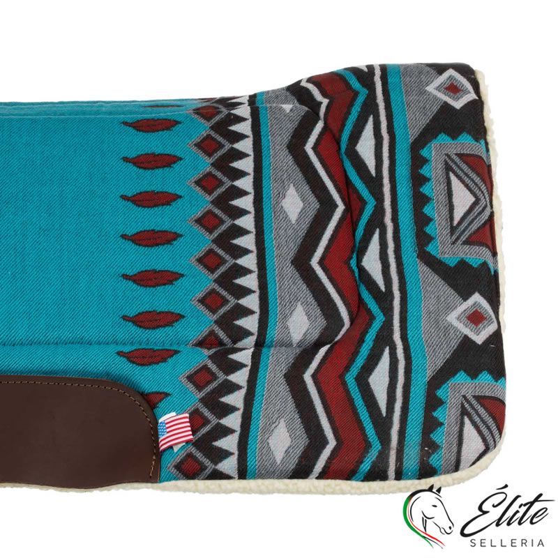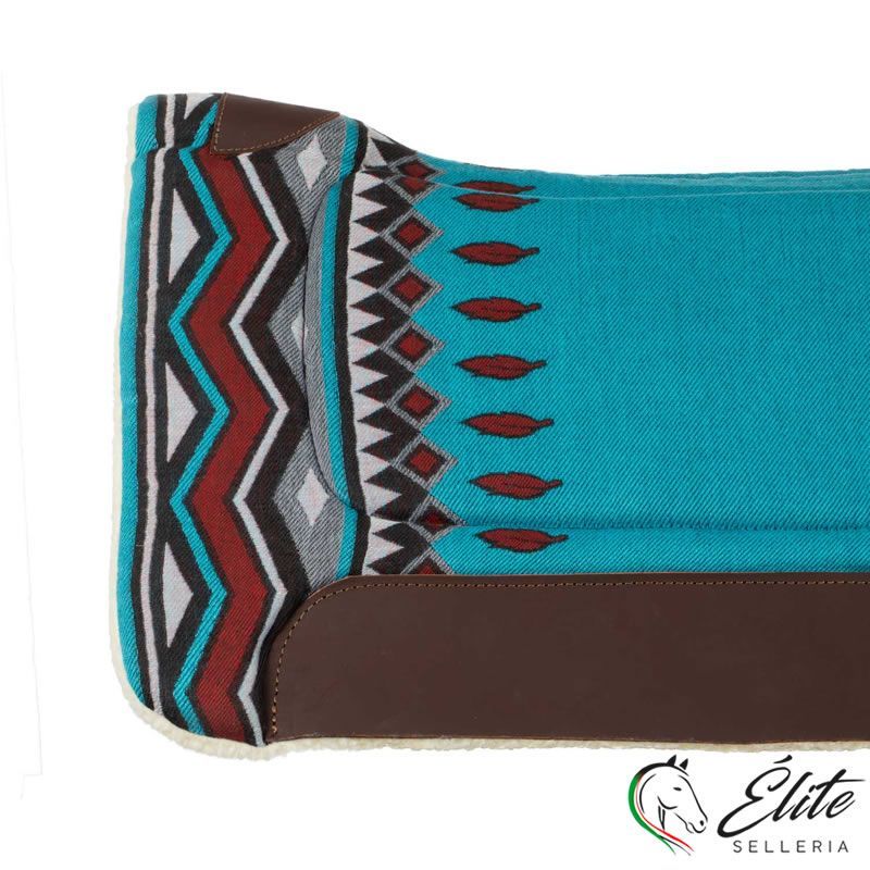 SOTTOSELLA WESTERN CON INSERTI IN PELLE E IMBOTTITURA IN LANA SINTETICA 85 X 87 AZZURRO CIELO/ROSSO