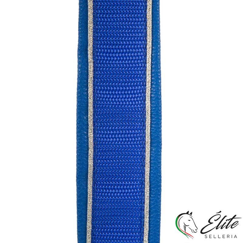 Ampio collare a Y in nylon con profili e fibbia in plastica easy-click sopra il collo. Si aggancia alla sella dell'imbracatura e al sottopancia tramite moschettoni.