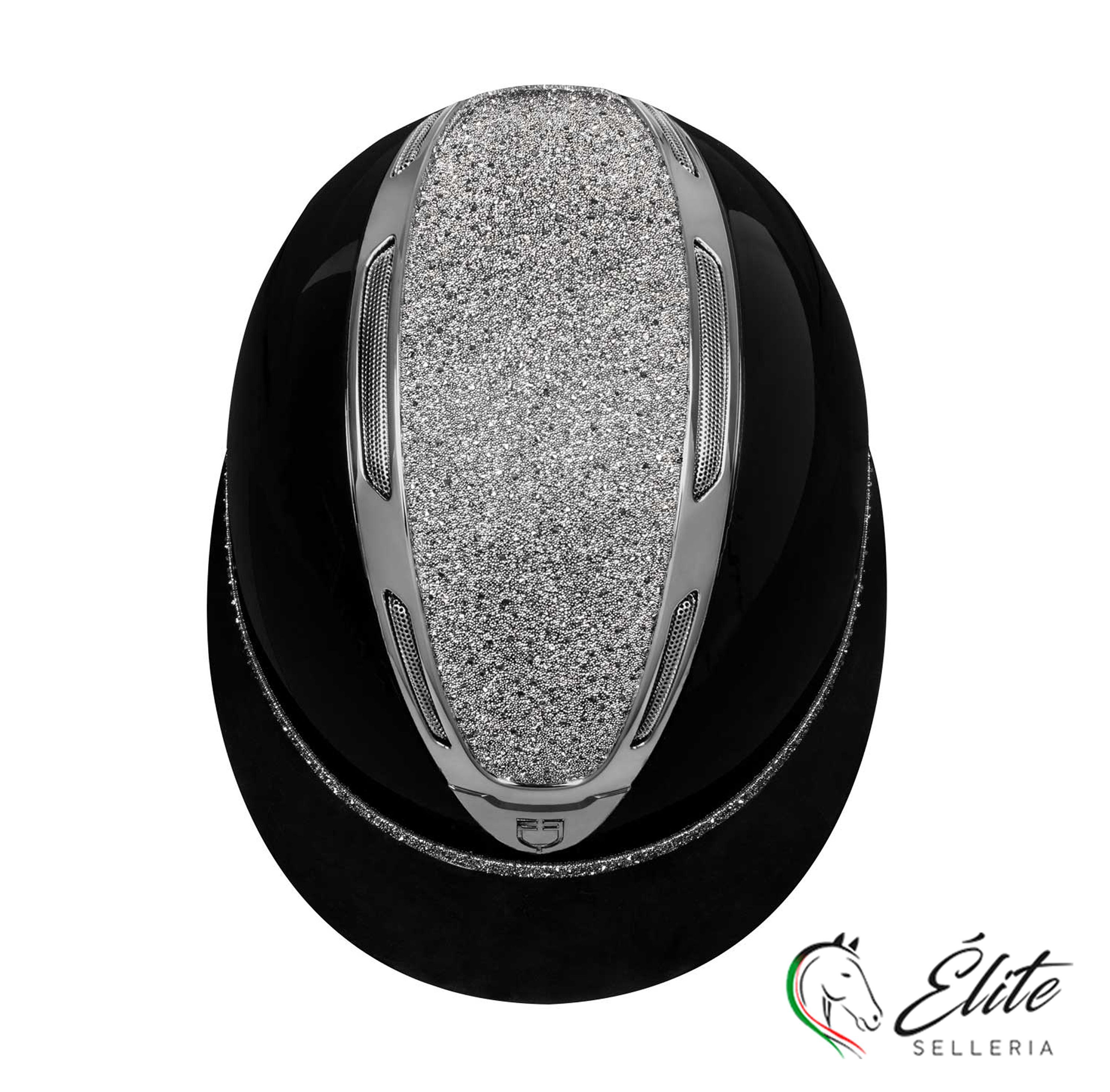 La presenza della targhetta con Logo tono su tono sul frame, rende il casco elegante e raffinato, in pieno stile Equestro.