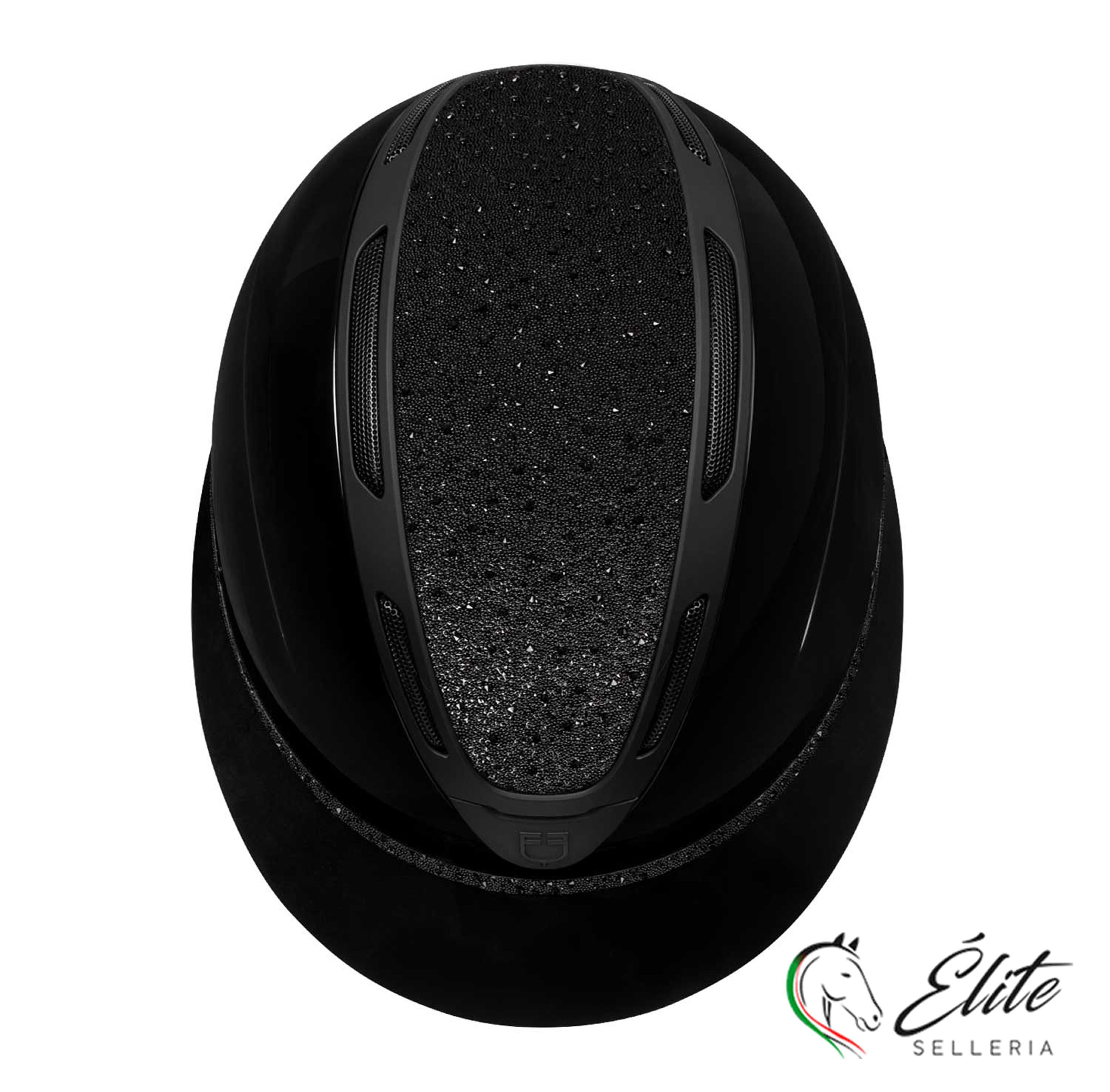 La presenza della targhetta con Logo tono su tono sul frame, rende il casco elegante e raffinato, in pieno stile Equestro.