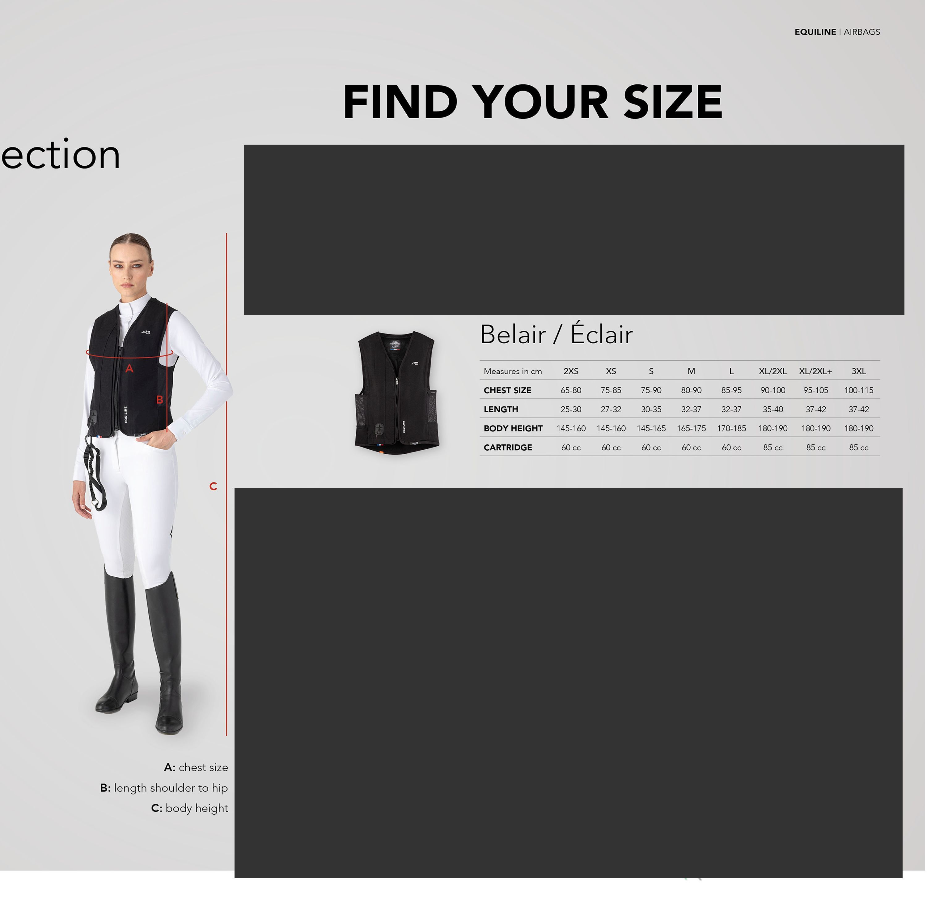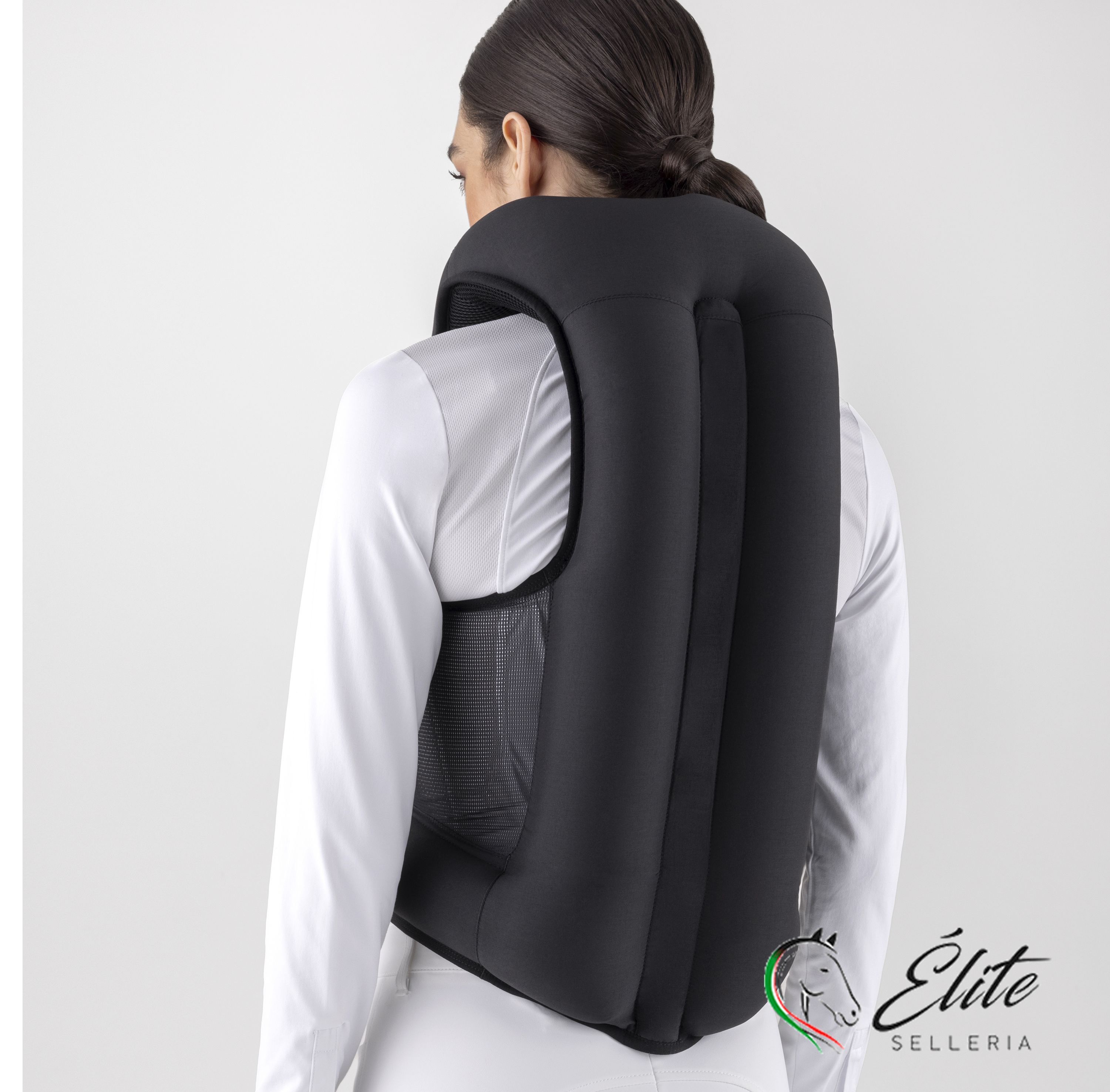 ECLAIR - GILET PER EQUITAZIONE Descrizione . Realizzato in Cordura/Nylon/Spandex e foderato in 3D mesh . Design ergonomico . Si gonfia in meno di 80 ms . Riutilizzabile sostituendo la cartuccia di . CO2 Ideale per il salto