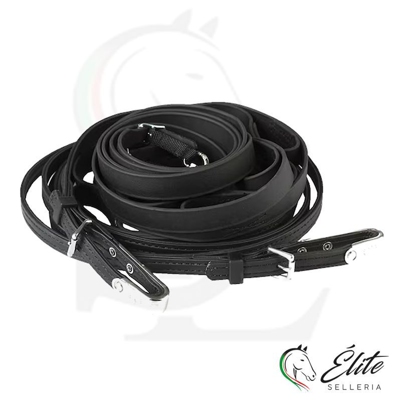 Redini da attacco sintetiche con prese multiple e materiale Beta a doppio strato cucito, 16mm nella parte anteriore e 25mm nella parte impugnabile. Cinque prese multiple per una presa ottimale. Rinforzate con estremità in acciaio inossidabile.
